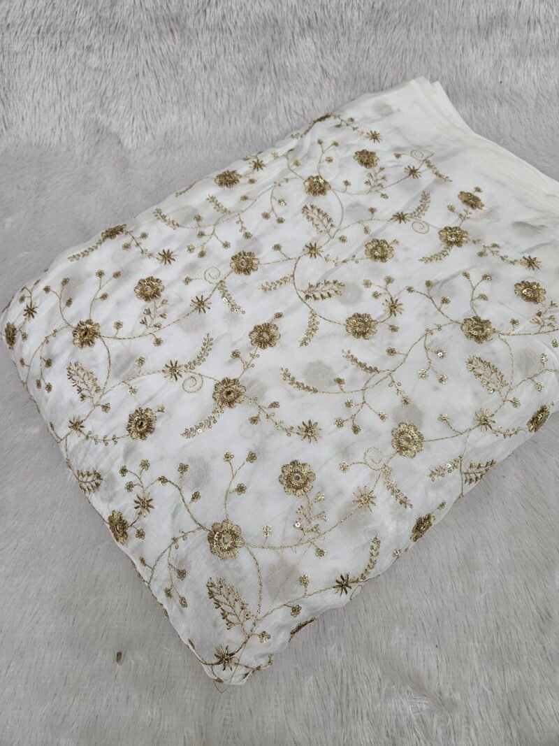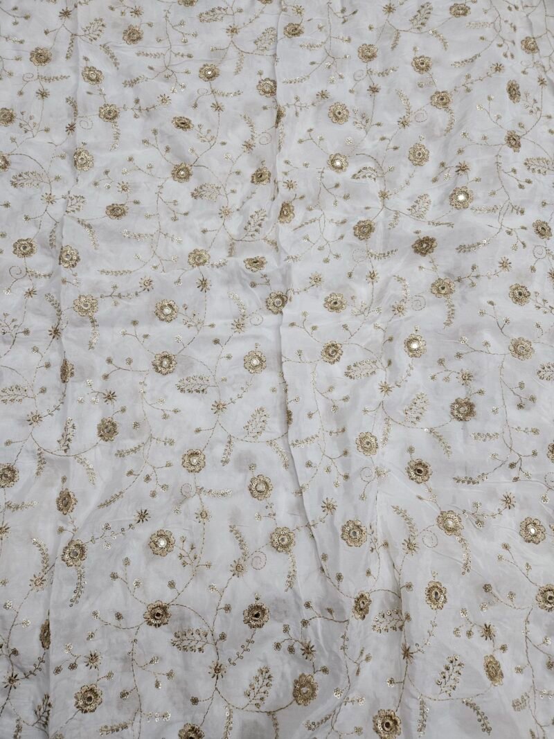 ALLOVER JARI WORK WITH MIRROR SEQUINS EMBROIDERY ON DYEABLE NATURAL CREPE FABRIC