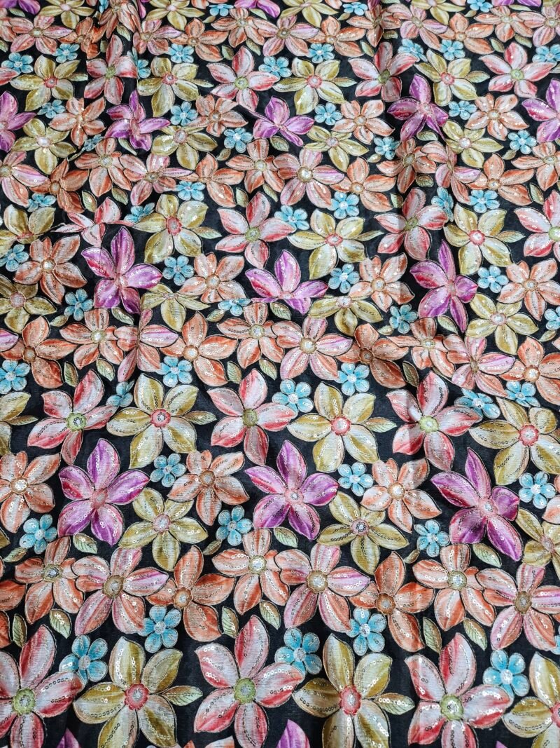 BLACK FLORAL POSITION PRINT ON CHINON FABRIC