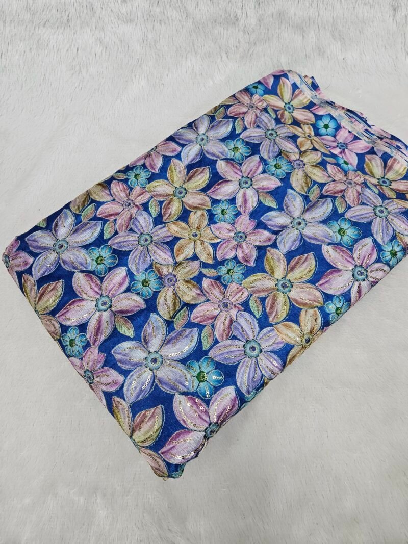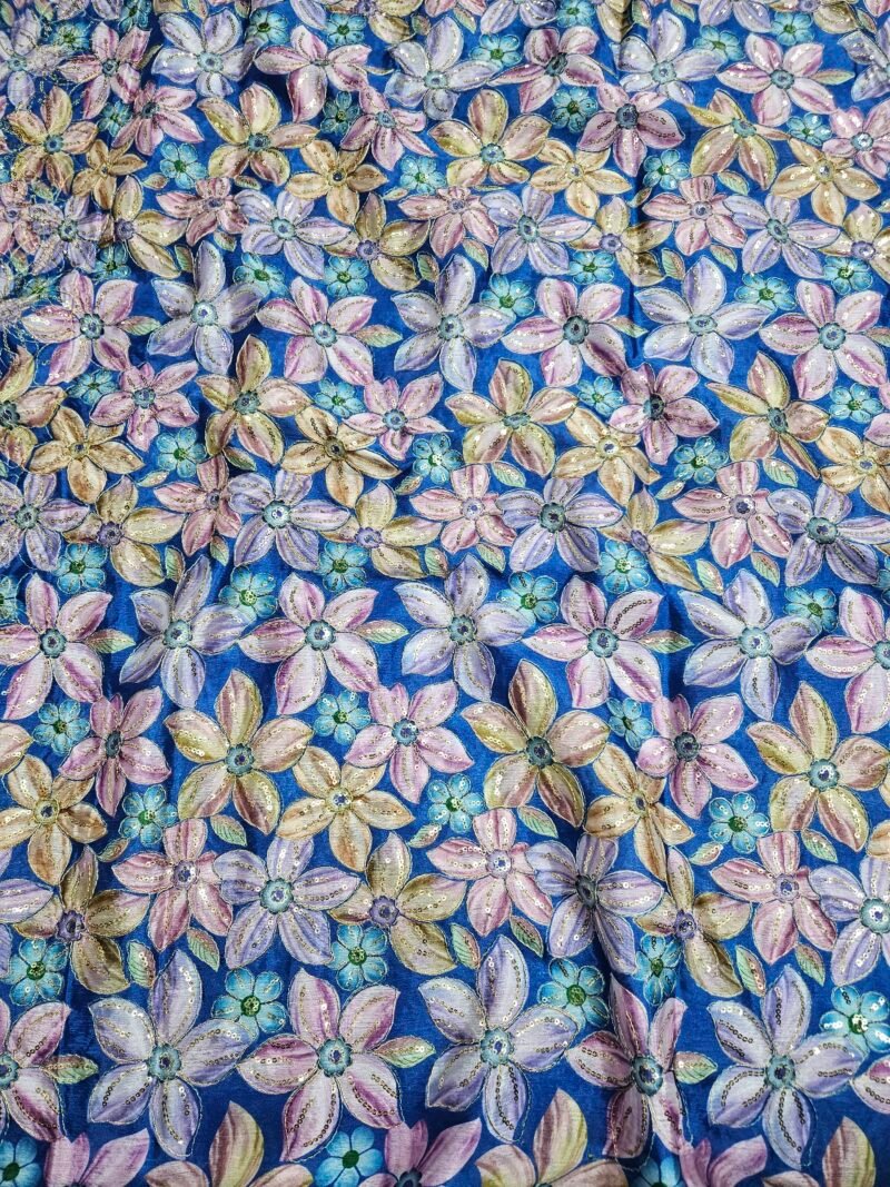 BLUE FLORAL POSITION PRINT ON CHINON FABRIC