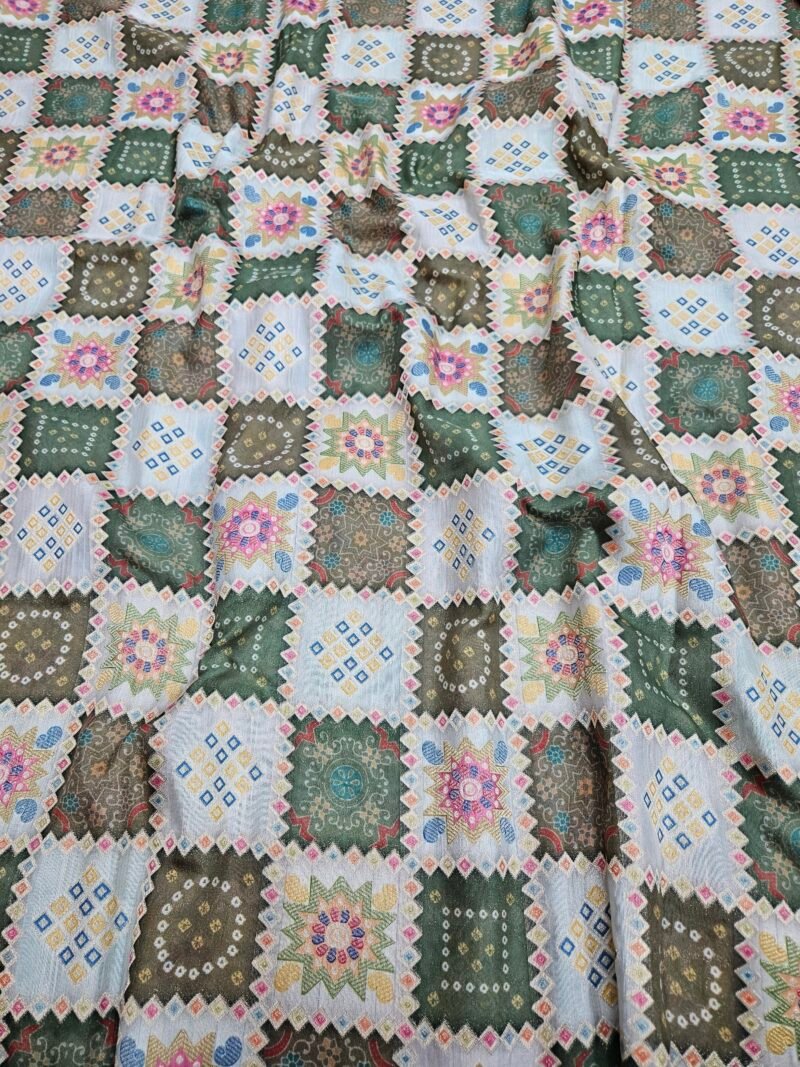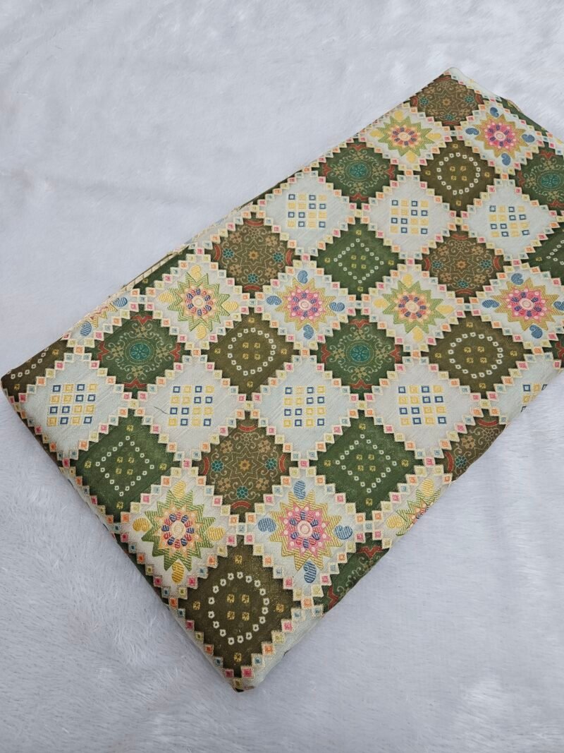 Green Jaquard Position Print On Cotton Silk Fabric
