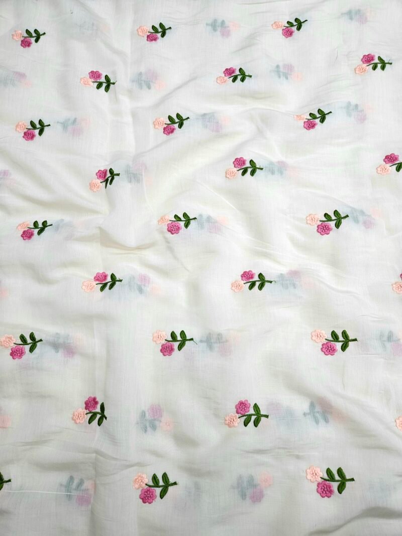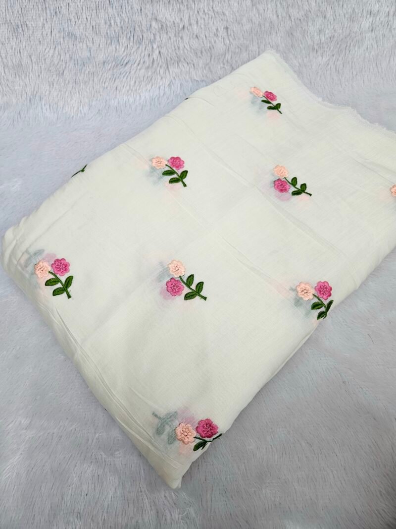 Cream Multi-Color Thread Embroidery On Mul Chanderi Fabric
