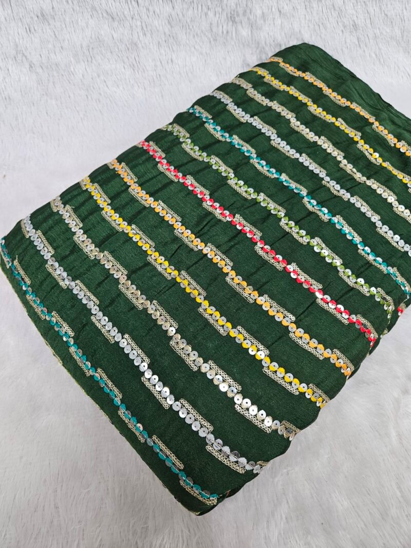 Dark Green Line Sequins Embroidery On Chinon Fabric