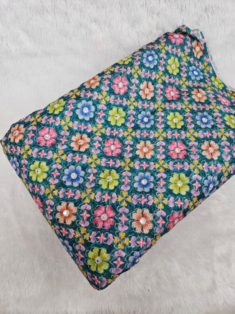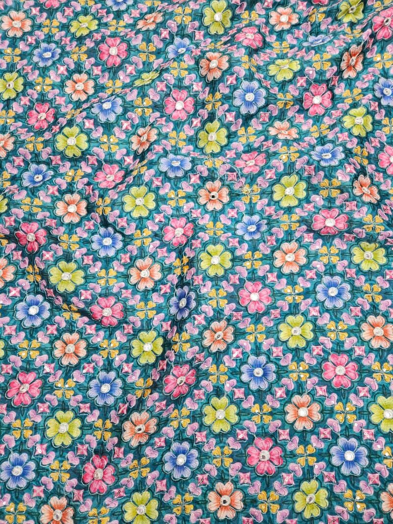 Dark Sea Green Floral Position Print On Chinon Fabric
