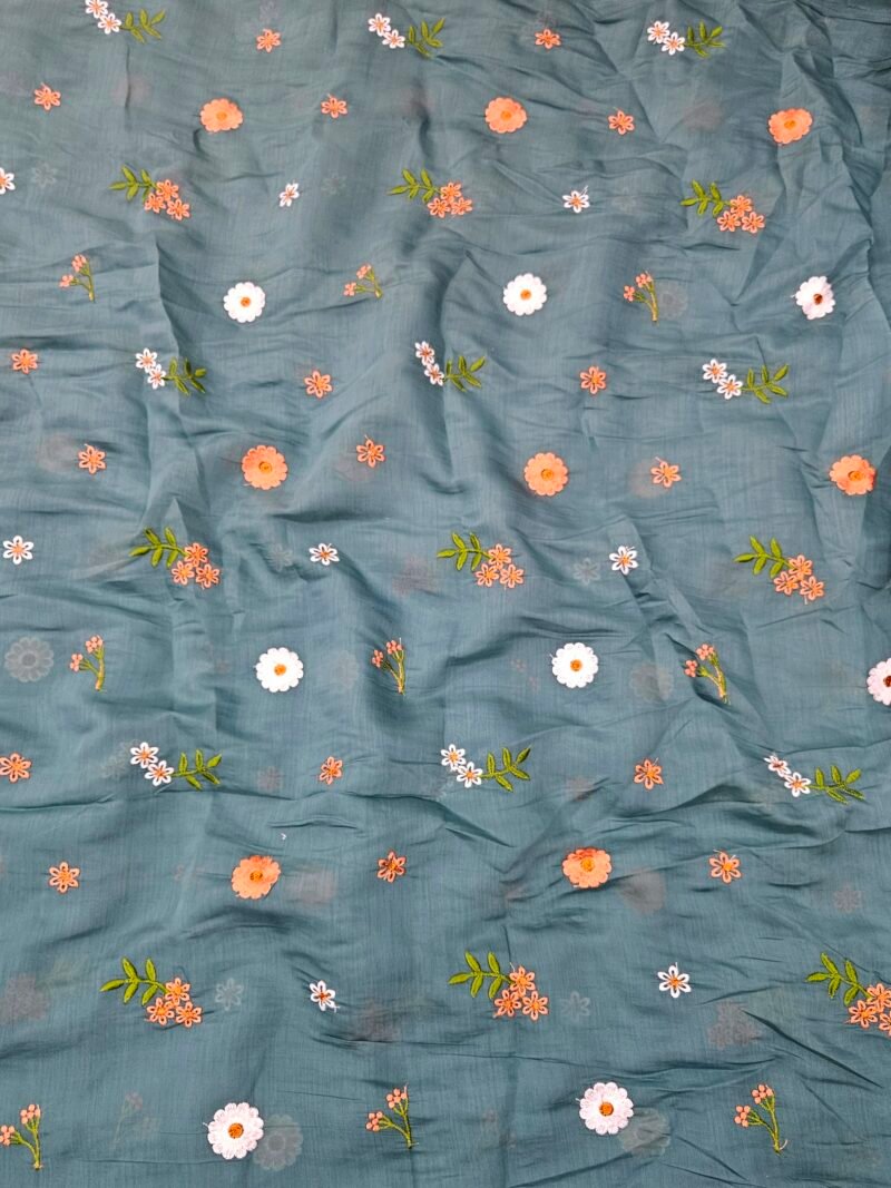 Be the first to review “Dusty Sea Green Multi-Color Thread Embroidery On Mul Chanderi Fabric”