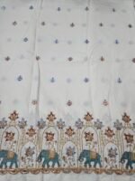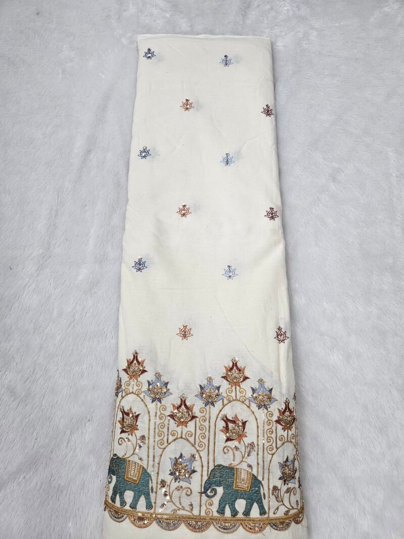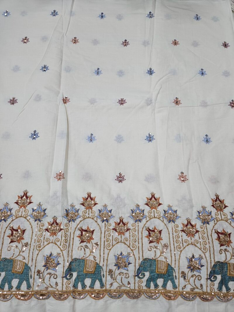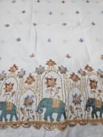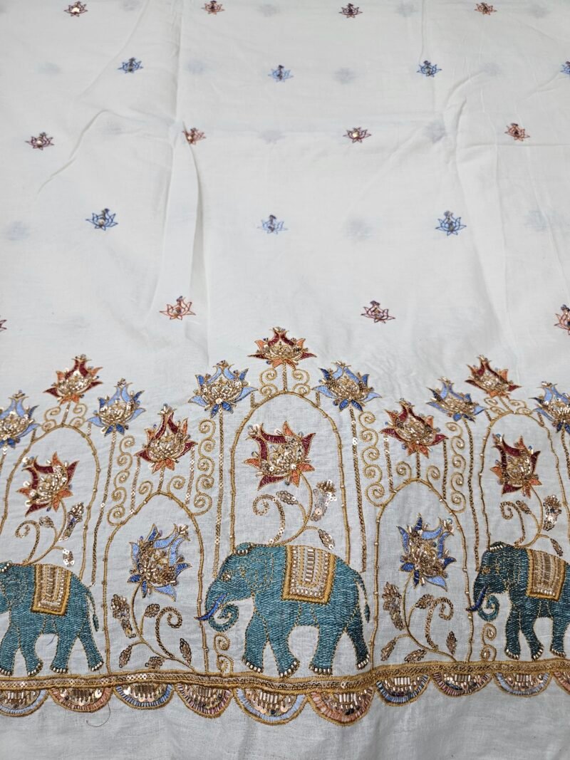 Elephant Multi-Thread Beads Embroidery On Kora Mul Cotton
