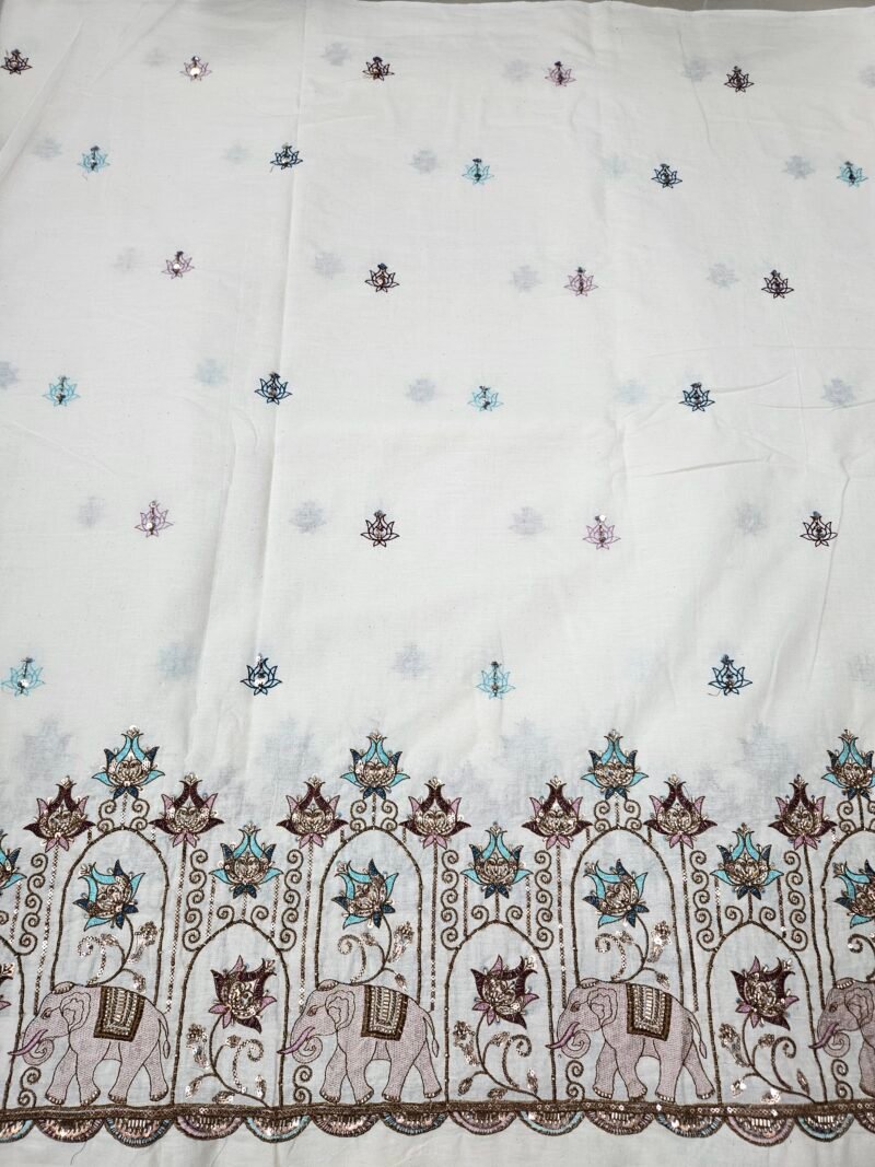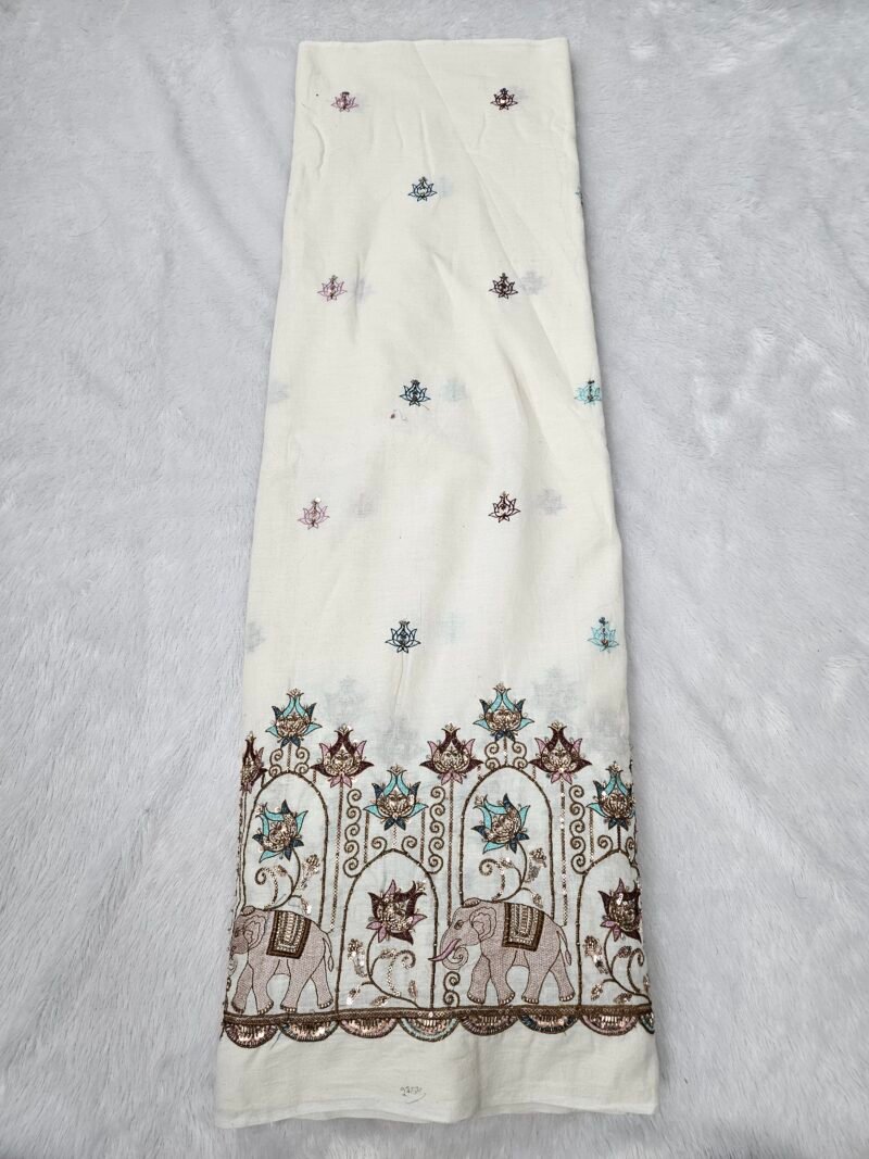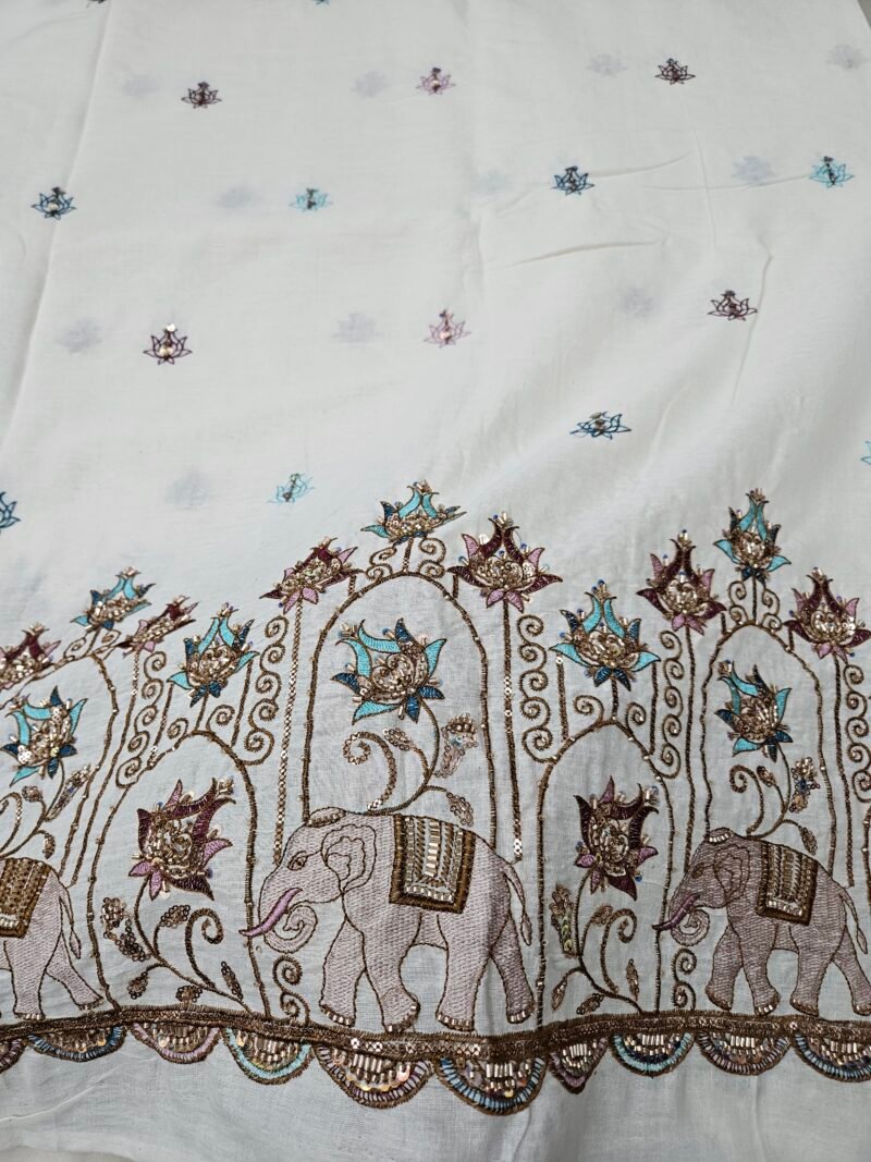 Elephant Multi-Thread Beads Embroidery On Kora Mul Cotton