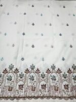 Floral Yellow Thread Embroidery On Kora Mul Cotton Fabric