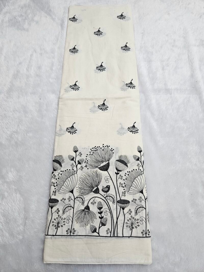 FLORAL BLACK THREAD EMBROIDERY ON KORA MUL COTTON FABRIC