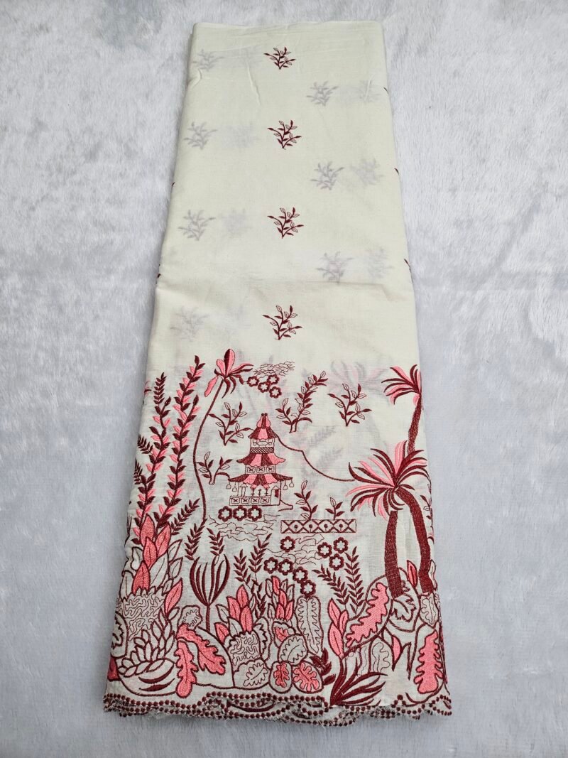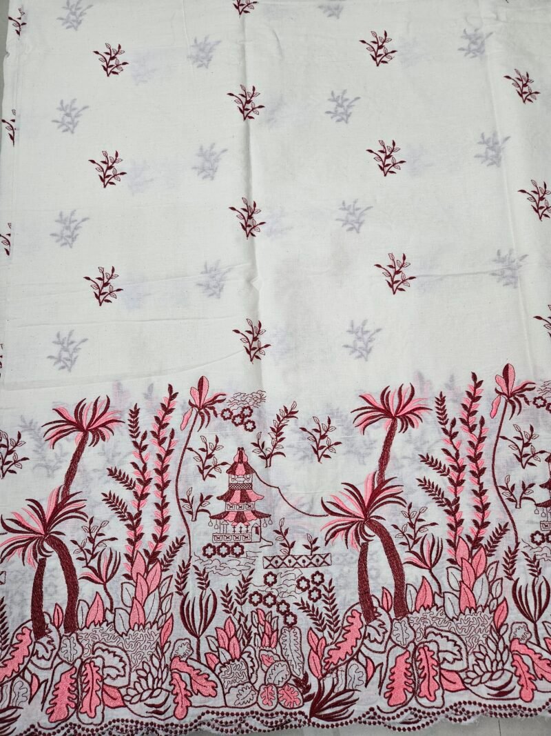 FLORAL COLOURED THREAD EMBROIDERY ON KORA MUL COTTON FABRIC