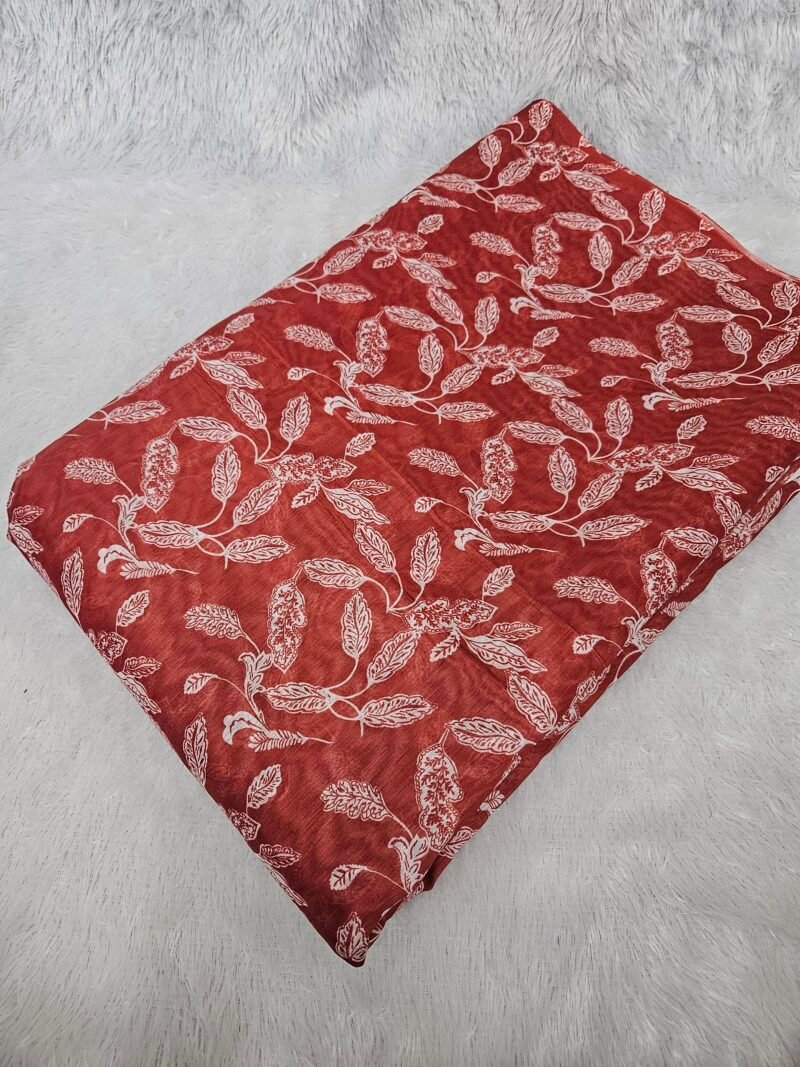 Floral Leaf Digital Print On Mul Chanderi Fabric