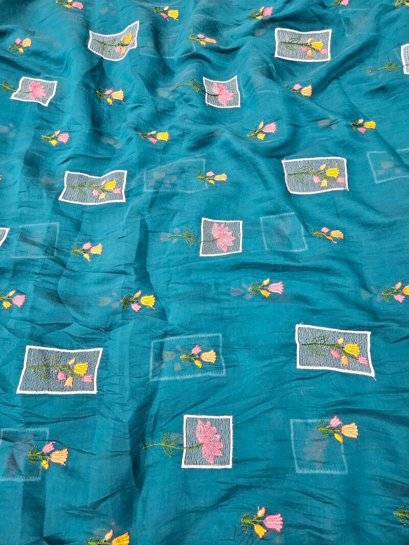 FLORAL THREADWORK WITH SEQUINS ON MUL CHANDERI FABRIC