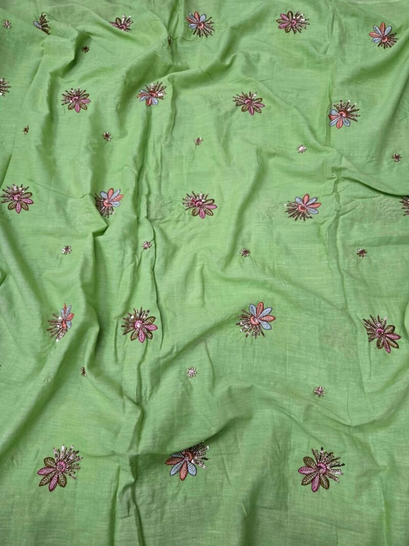Floral Grey Thread Embroidery On Kora Mul Cotton Fabric