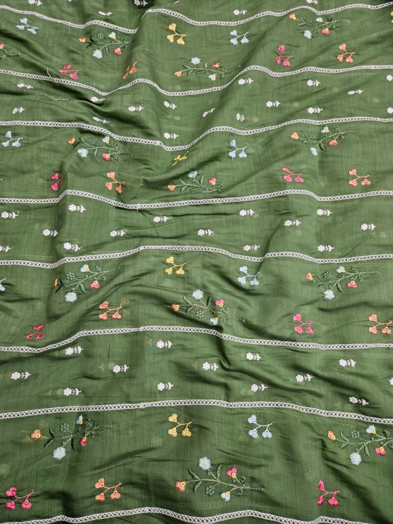 Be the first to review “Green Thread Embroidery On Mul Chanderi Fabric”
