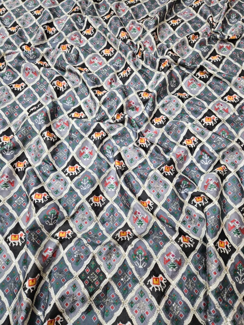 GREY PATOLA POSITION PRINT ON D-CREPE FABRIC
