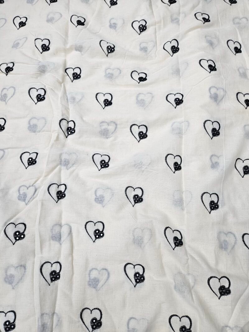 Heart Thread Embroidery On Dyeable Kora Cotton