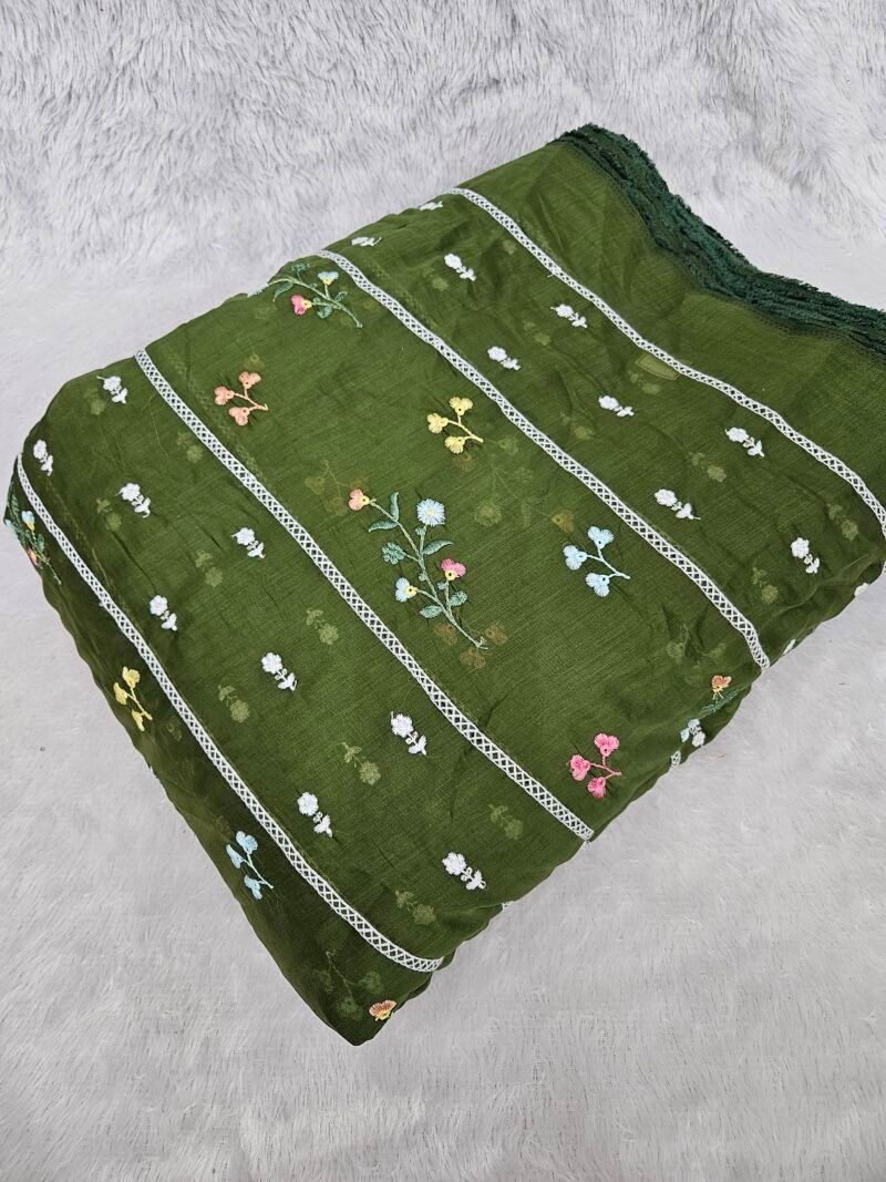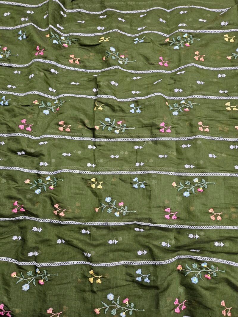 Mehndi Green Thread Embroidery On Mul Chanderi Fabric