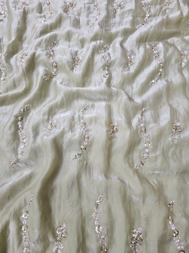 Mint Green Beads Embroidery On Space Silk Fabric
