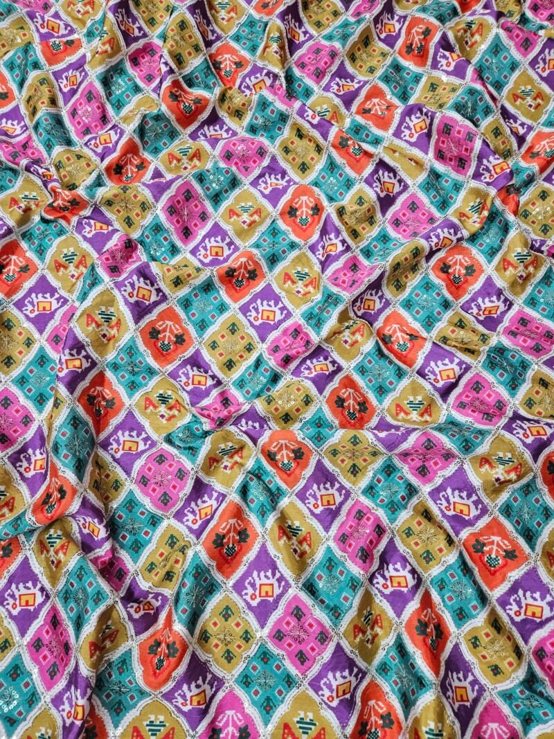MULTI-COLOUR PATOLA POSITION PRINT ON D-CREPE FABRIC