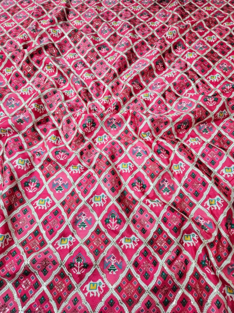 PINK PATOLA POSITION PRINT ON D-CREPE FABRIC