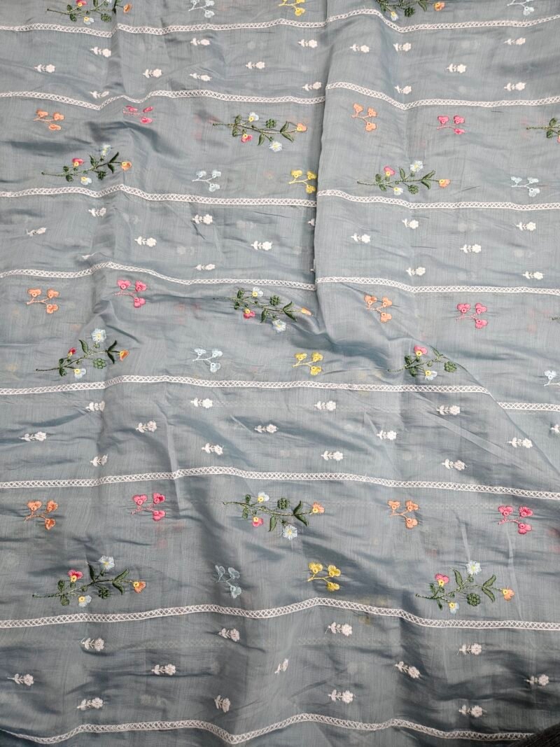 Powder Blue Thread Embroidery On Mul Chanderi Fabric