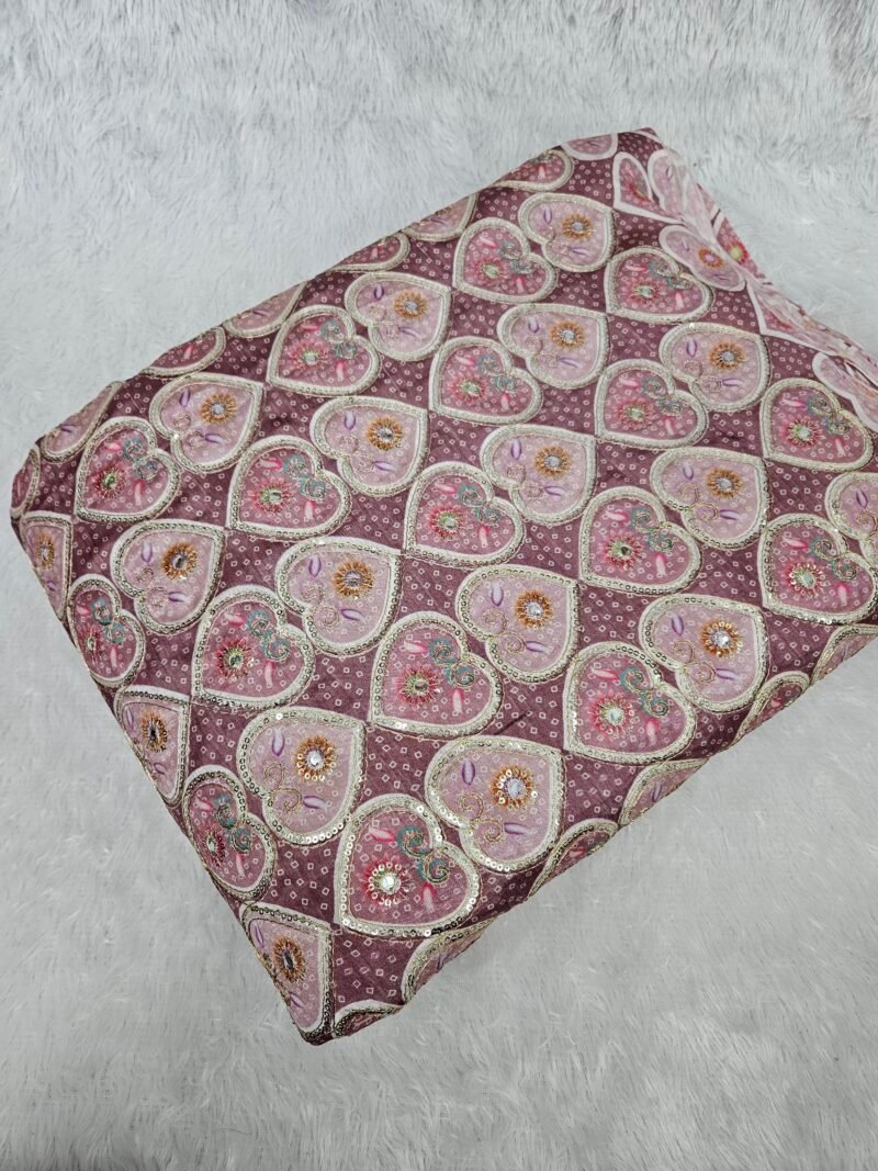 Soft Chinon Position Print With Sequins Embroidered