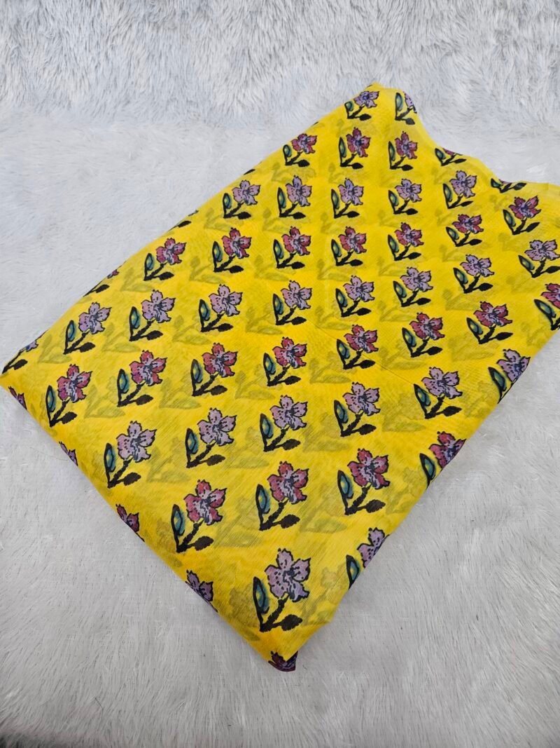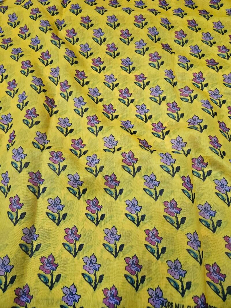 Yellow Floral Digital Print On Mul Chanderi Fabric