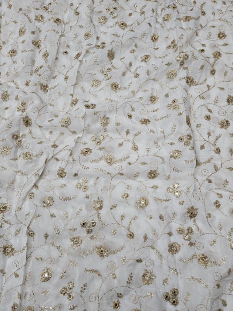 Beige Beads Daman Embroidery On Pure Shimmer Fabric